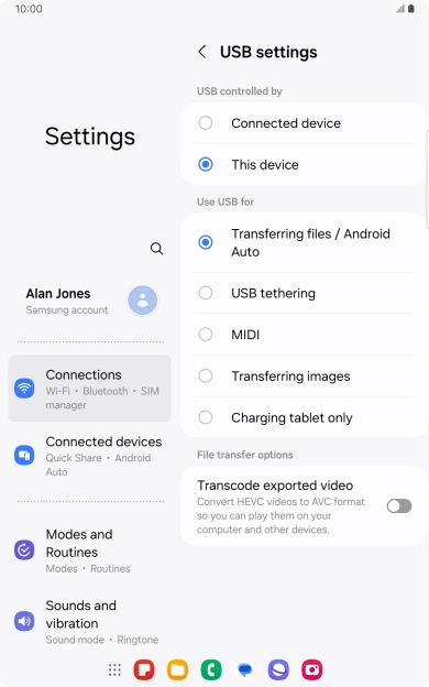 Press Tap for other USB options..