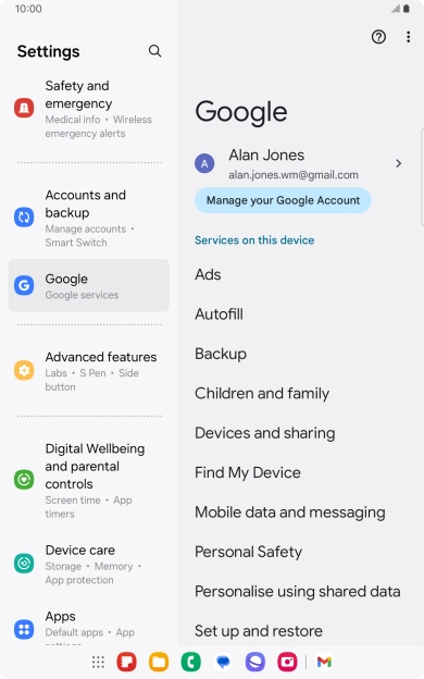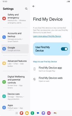 Select settings for Find My Device