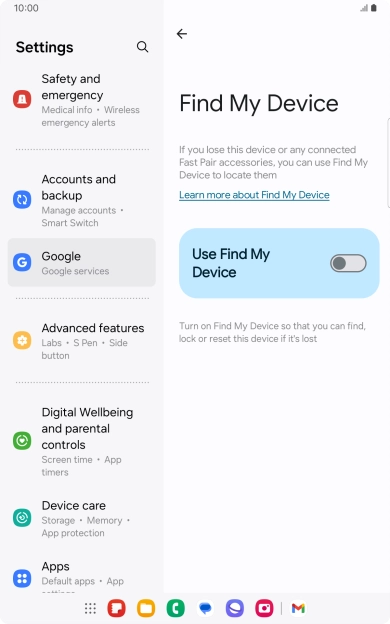 Press the indicator next to "Use Find My Device" to turn on the function.