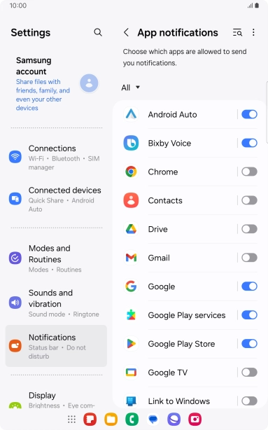 Press the indicators next to the required apps to turn the function on or off.