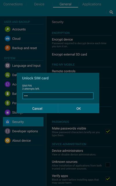 The PIN protects your SIM from unauthorised use if your tablet should get stolen. If use of PIN is turned on, it needs to be keyed in when you turn on your tablet.