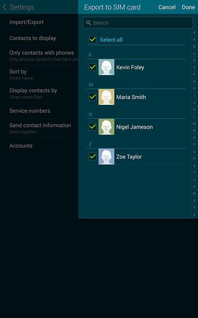 4. 2b - Copy contacts from your tablet to your SIM