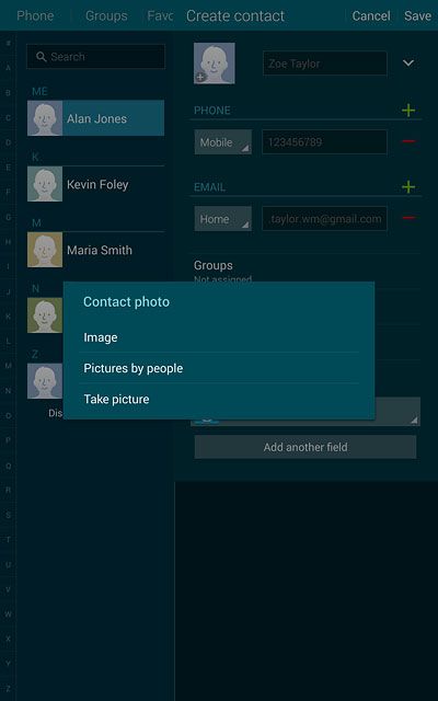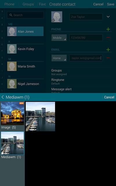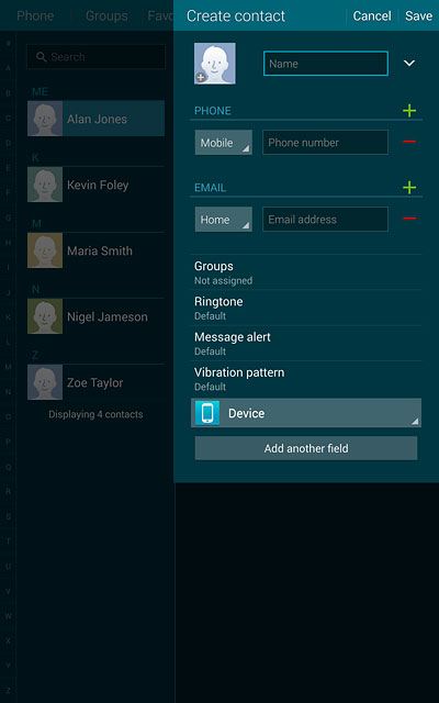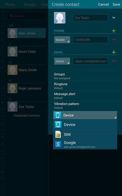 If you select Device, the contact is created in your tablet's address book.
