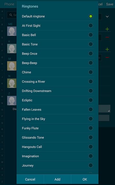 To assign one of your tablet's default ring tones: