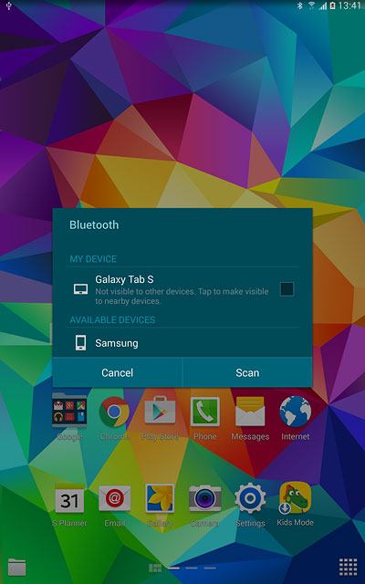 Your tablet searches for devices and after a moment, a list of Bluetooth devices within range is displayed.