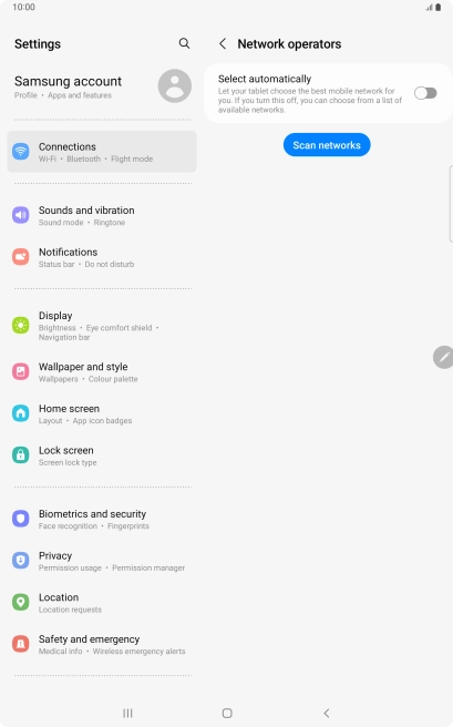 Press the indicator next to "Select automatically" to turn off the function and wait while your tablet searches for networks.