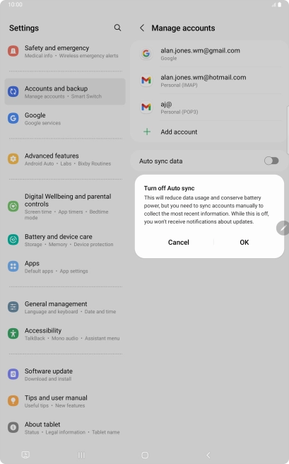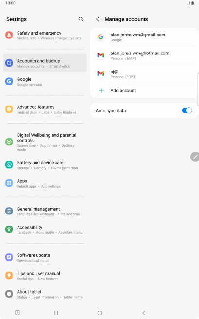 Press the indicator next to "Auto sync data" to turn the function on or off.