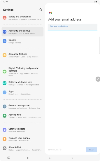 If this screen is displayed, you email account has been recognised and set up automatically. Follow the instructions on the screen to key in more information and finish setting up your tablet.