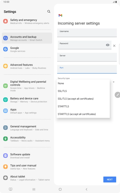 Set up your tablet for IMAP email