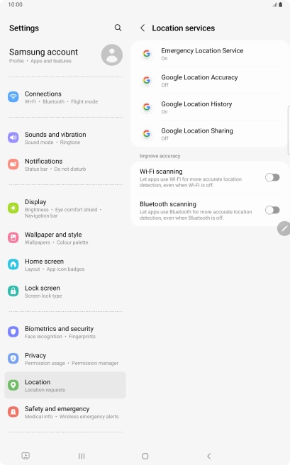 If you press the indicator next to "Improve Location Accuracy" to turn off the function, your tablet can find your exact position using the GPS satellites but it may take longer as there is no access to supplementary information from the mobile network or nearby Wi-Fi networks.