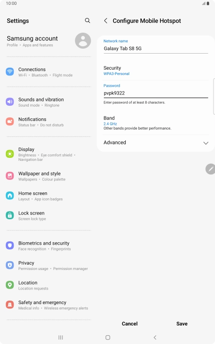 Press WPA3-Personal to password protect your Wi-Fi hotspot.
