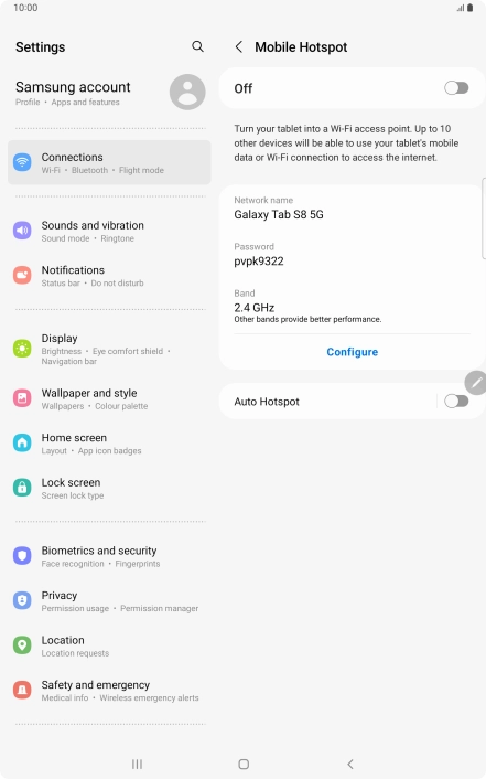 Key in the password for your Wi-Fi hotspot and establish the connection.