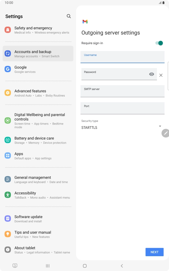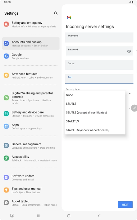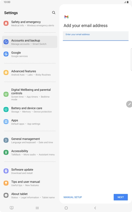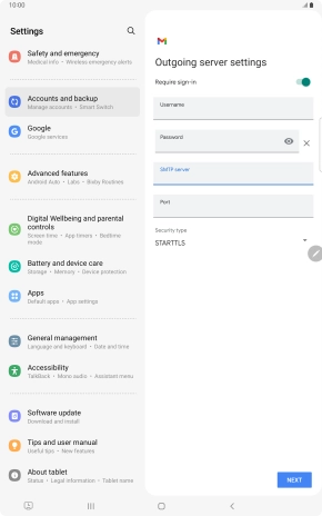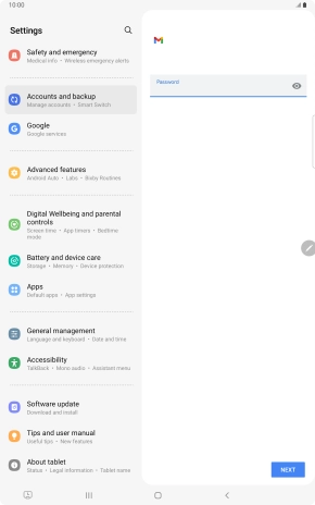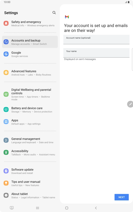 If this screen is displayed, you email account has been recognised and set up automatically. Follow the instructions on the screen to key in more information and finish setting up your tablet.