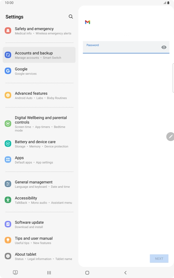 Press the field below "Password" and key in the password for your email account.