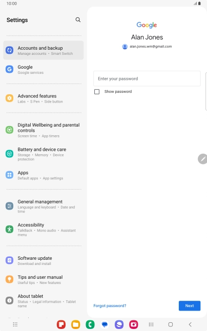 Press the field below "Enter your password" and key in the password for your Google account.