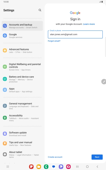 If you don't have a Google account, press Create account and follow the instructions on the screen to create an account.