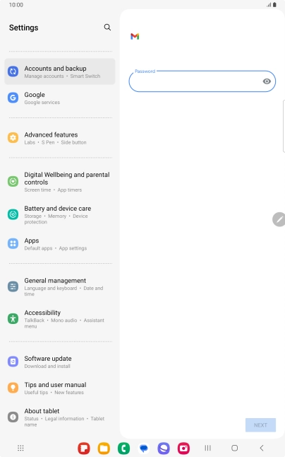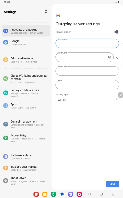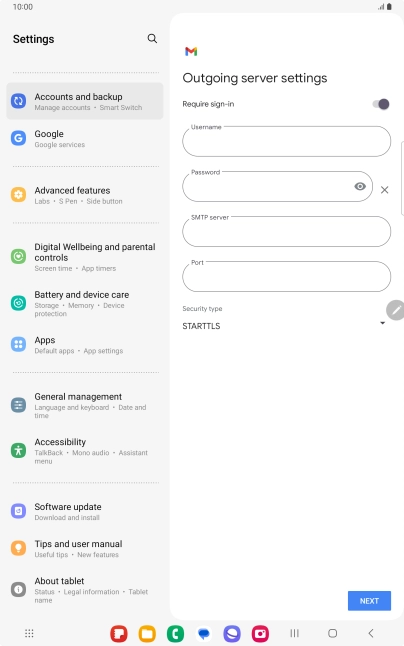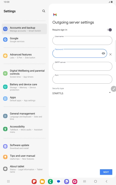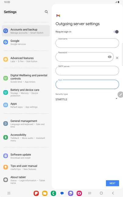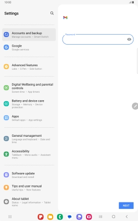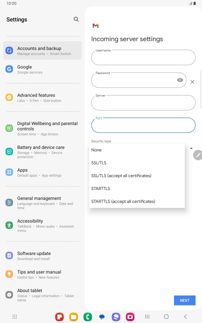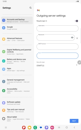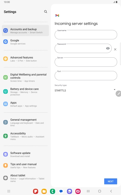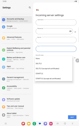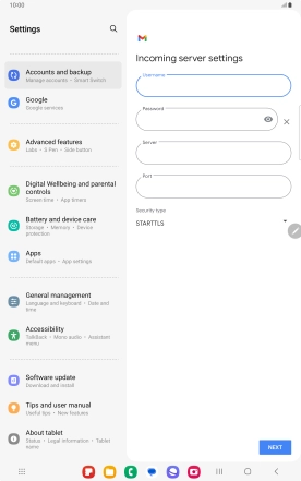 If this screen is displayed, you email account has been recognised and set up automatically. Follow the instructions on the screen to key in more information and finish setting up your tablet.