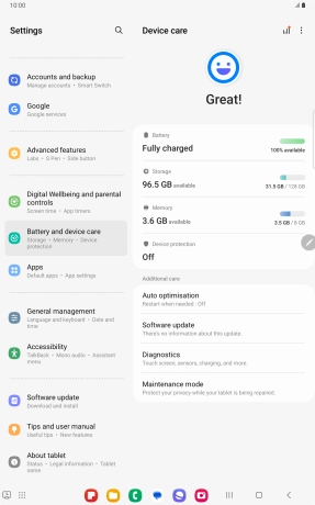 Press Battery and device care.