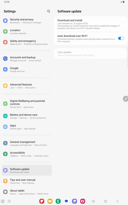 Press Download and install. If a new software version is available, it's displayed. Follow the instructions on the screen to update the tablet software.