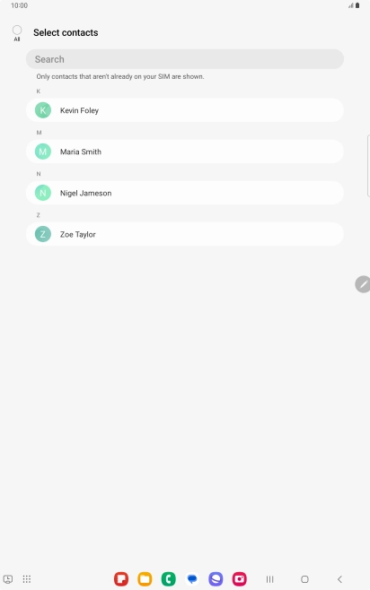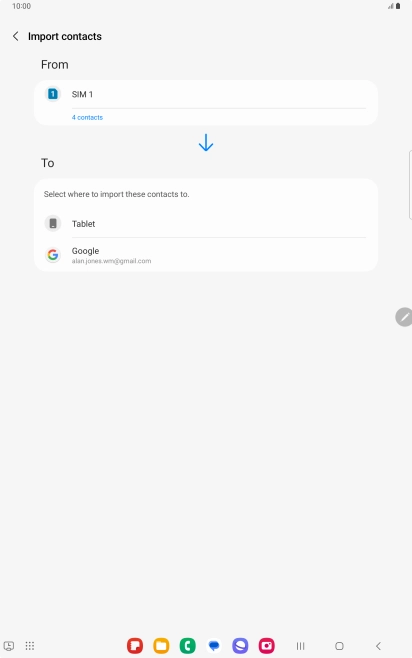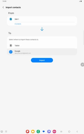 You can copy your contacts between your SIM and your Google account. This way, you won't lose your contacts if you change your SIM or tablet. To copy contacts between your SIM and your Google account, you need to activate your Google account on your tablet.