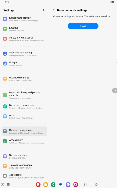 If you have problems using network configurations on your tablet, such as mobile data, Wi-Fi or Bluetooth, resetting the network settings may help.