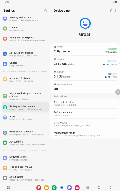 Press Battery and device care.