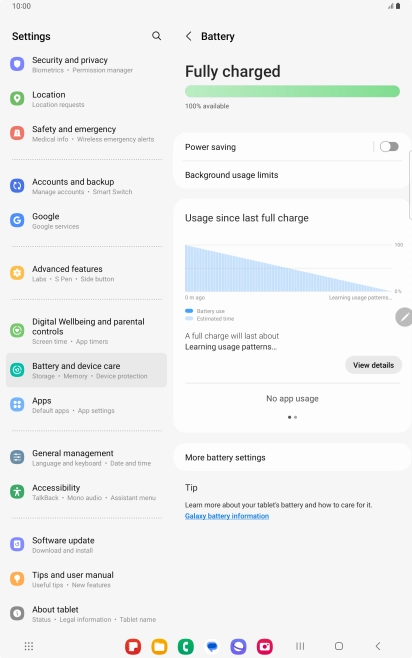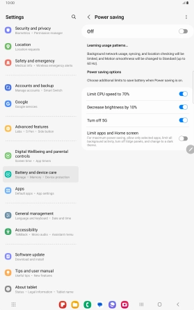 Some functions on your tablet use a lot of power and therefore significantly reduce the battery life. You can reduce the power consumption by turning on low power mode.