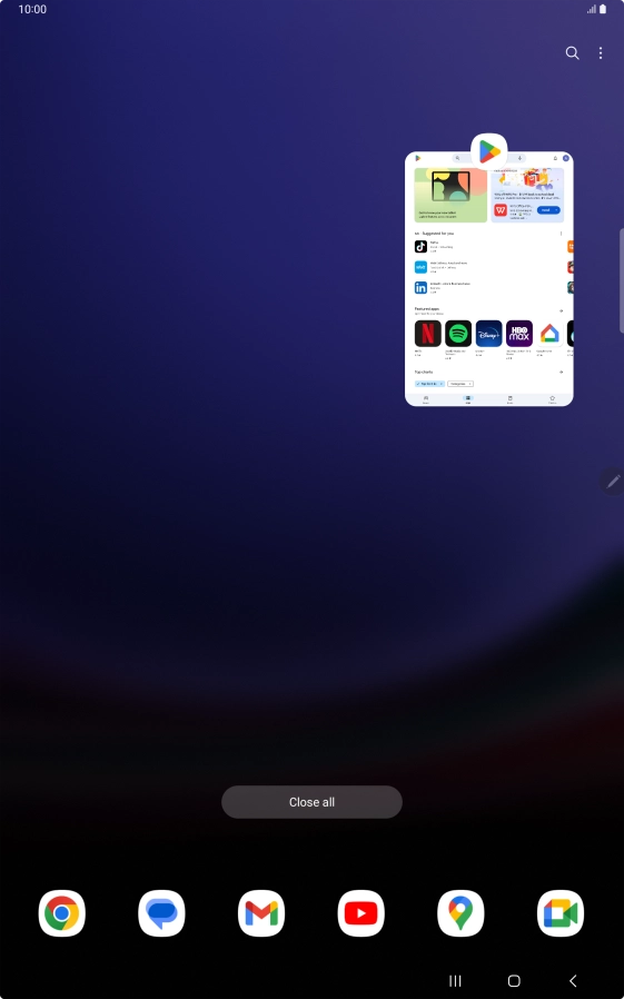 To end all running applications, press Close all.