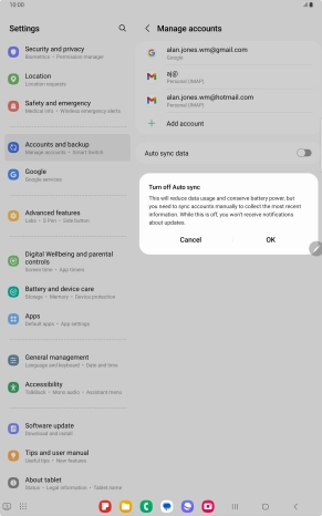 Press the indicator next to "Auto sync data" to turn the function on or off.