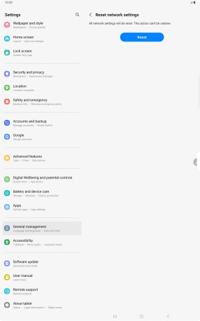 If you have problems using network configurations on your tablet, such as mobile data, Wi-Fi or Bluetooth, resetting the network settings may help.