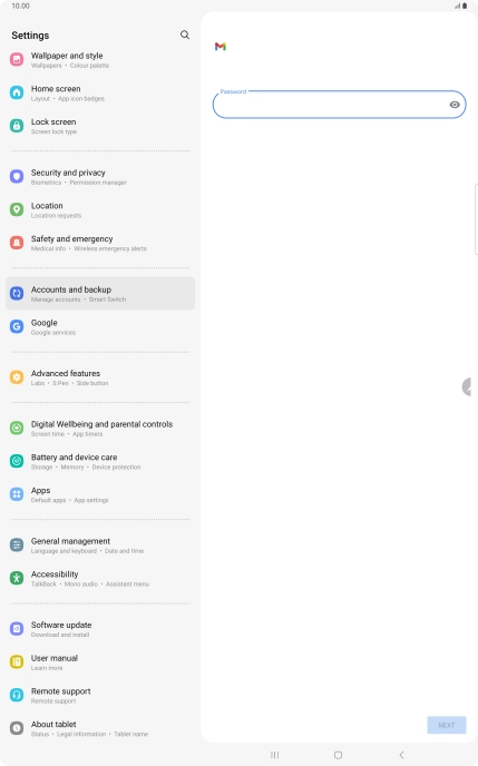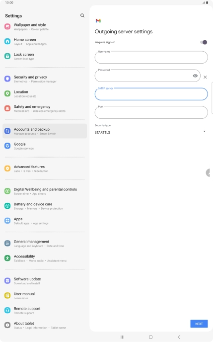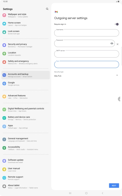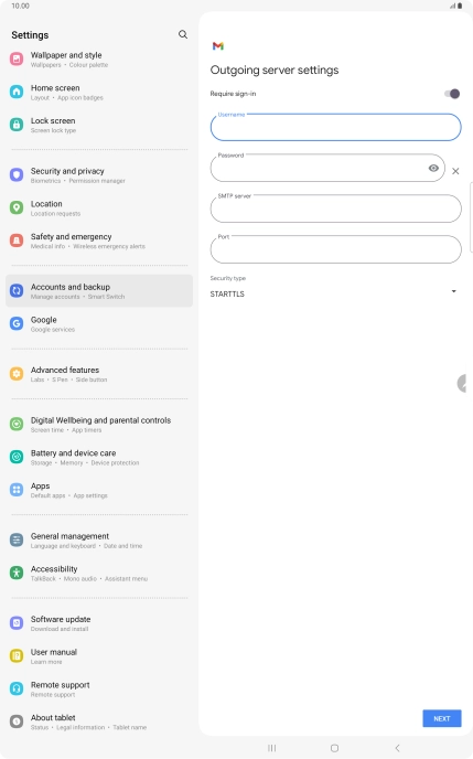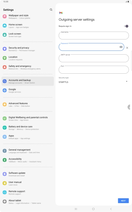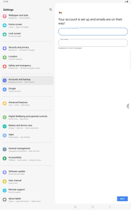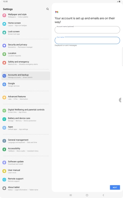 If this screen is displayed, you email account has been recognised and set up automatically. Follow the instructions on the screen to key in more information and finish setting up your tablet.
