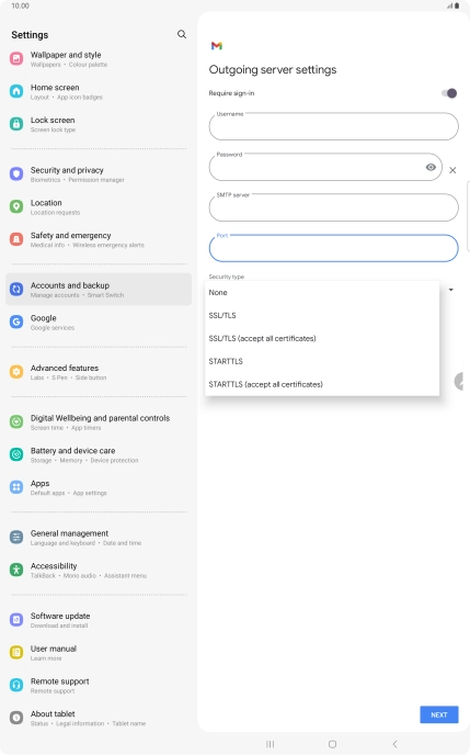 Set up your tablet for IMAP email