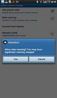 Press Data roaming to activate or deactivate data roaming.