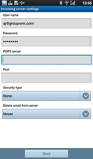 Press the field below POP3 server and key in the name or IP address of your email provider's incoming server.