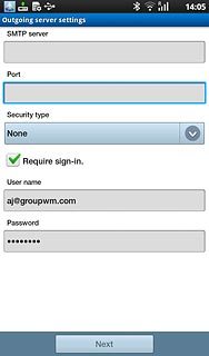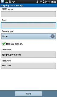 Press the field below SMTP server and key in the name or IP address of your email provider's outgoing server.