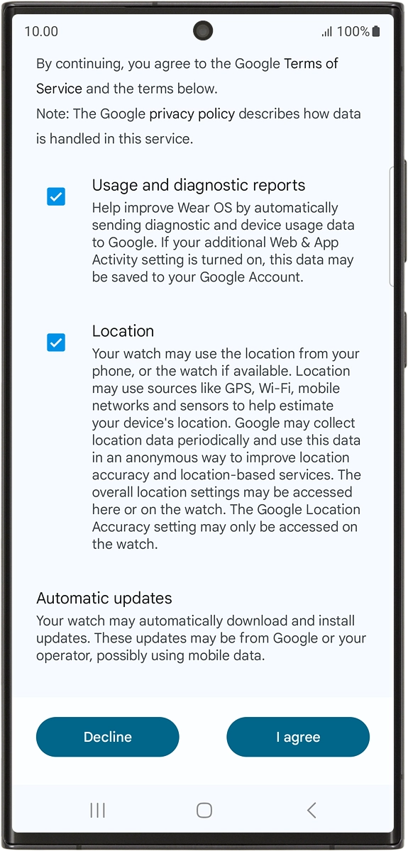 On your phone: Follow the instructions on the screen to select the required settings and press Continue.