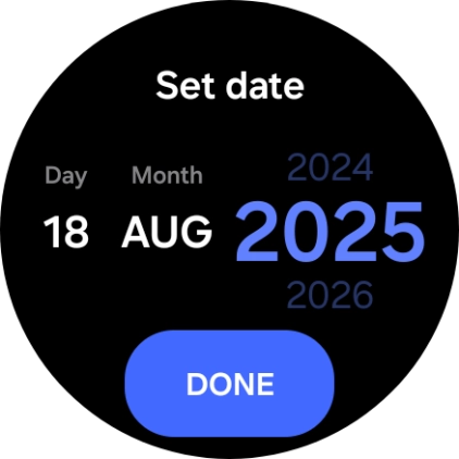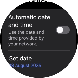 Date and time are automatically set from your phone but can be set manually if, e.g., your smartwatch isn't connected to your phone.
