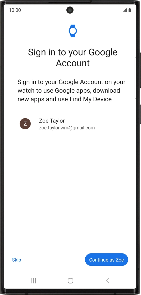 On your phone: To set up mobile data on your smartwatch later, press Skip.