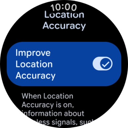 If you press the indicator next to "Improve Location Accuracy" to turn on the function, your smartwatch can find your exact position using the GPS satellites, the mobile network and nearby Wi-Fi networks. Satellite-based GPS requires a clear view of the sky.