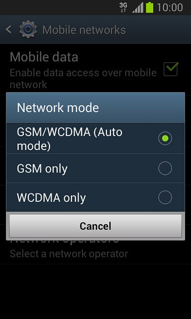 If you select GSM/WCDMA (Auto mode), your phone automatically switches between the two network modes provided that you're within range of a 3G network.