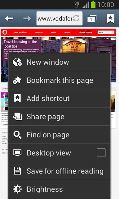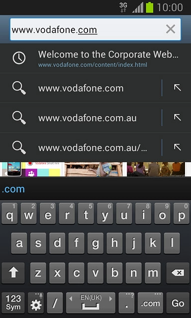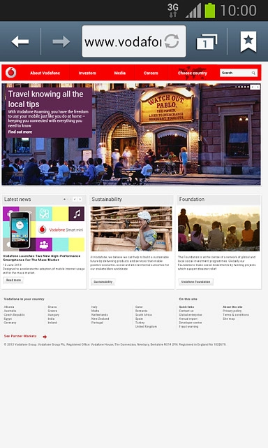Key in the address of the required web page and press Go.