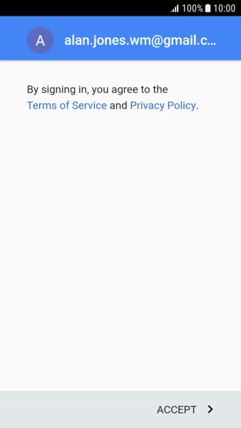 Press ACCEPT and follow the instructions on the screen to select settings for your Google account.