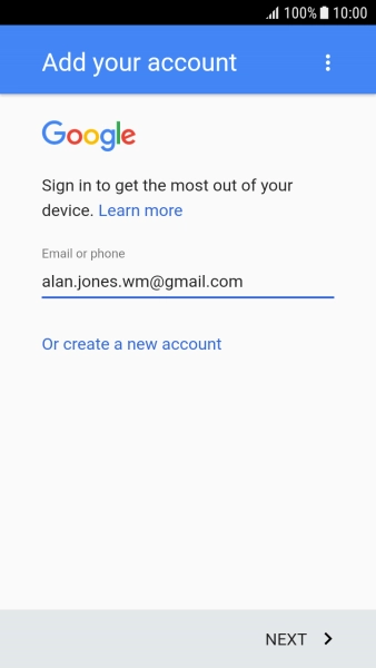 If you don't have a Google account, press Or create a new account and follow the instructions on the screen to create an account.