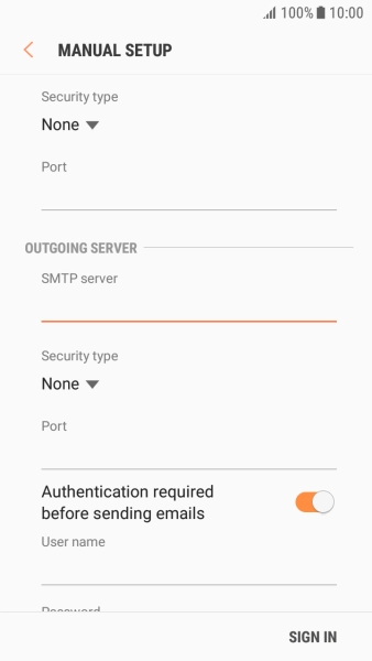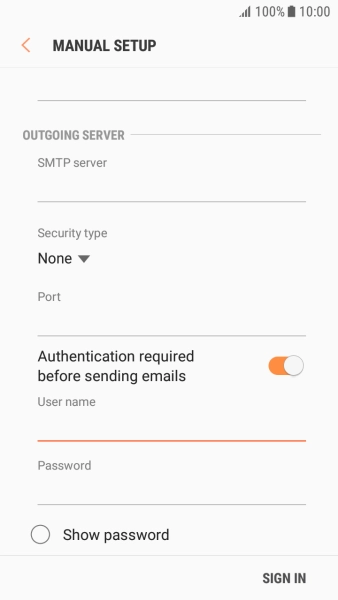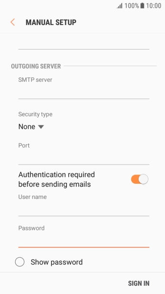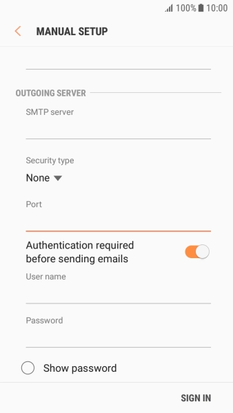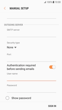 Press the field below "Password" and key in the password of your email provider's outgoing server.