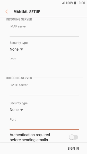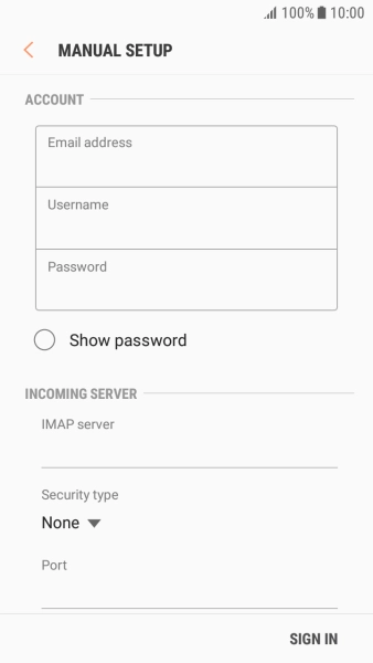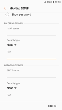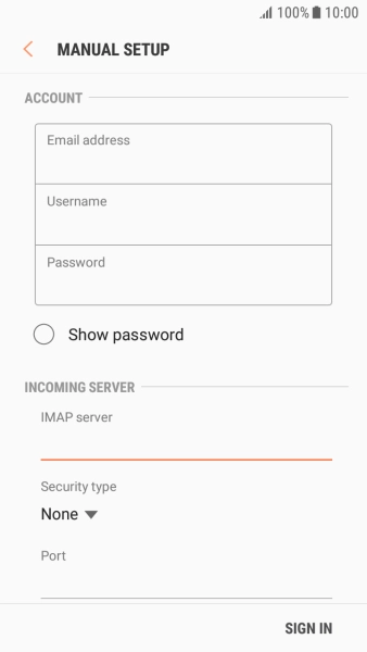 Press the field below "IMAP server" and key in the name of your email provider's incoming server.