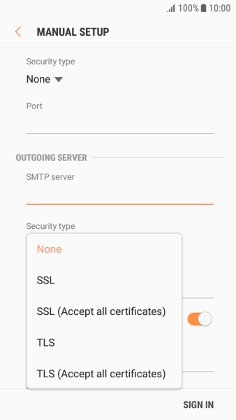 Press the field below "SMTP server" and key in the name of your email provider's outgoing server.