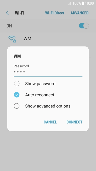 Key in the password for the Wi-Fi network and press CONNECT.