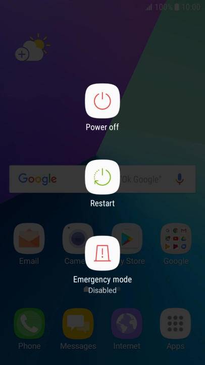 Press and hold On/Off until a pop-up menu is displayed.