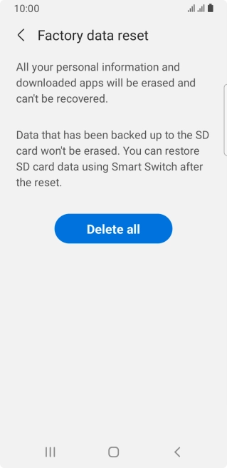 Press Delete all. Wait a moment while the factory default settings are restored. Follow the instructions on the screen to set up your phone and prepare it for use.