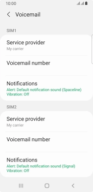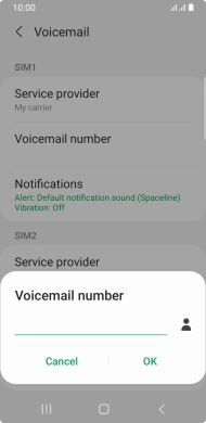 Press Voicemail number below the required SIM.